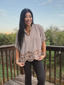 CARAMEL LATTE EMBROIDERED TOP